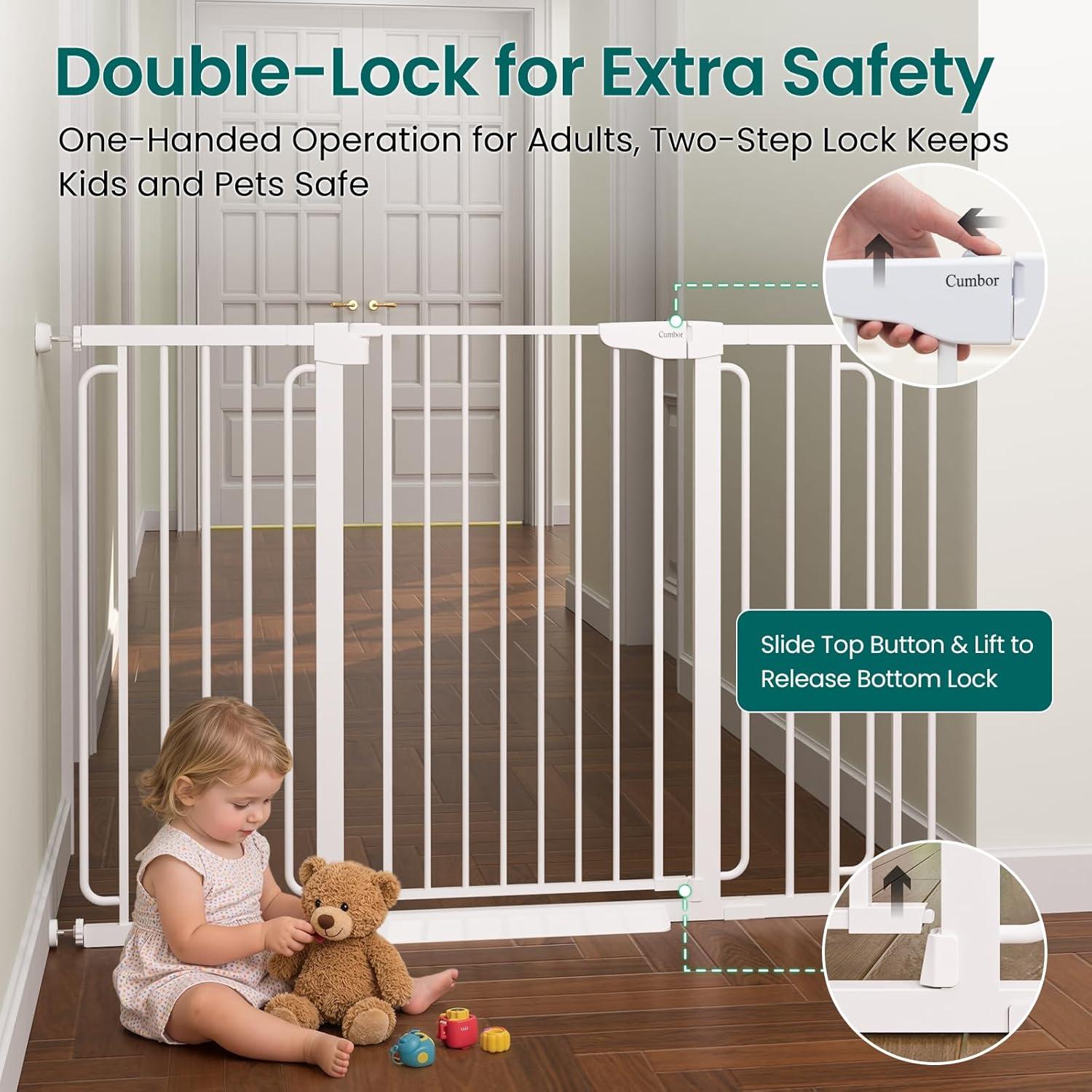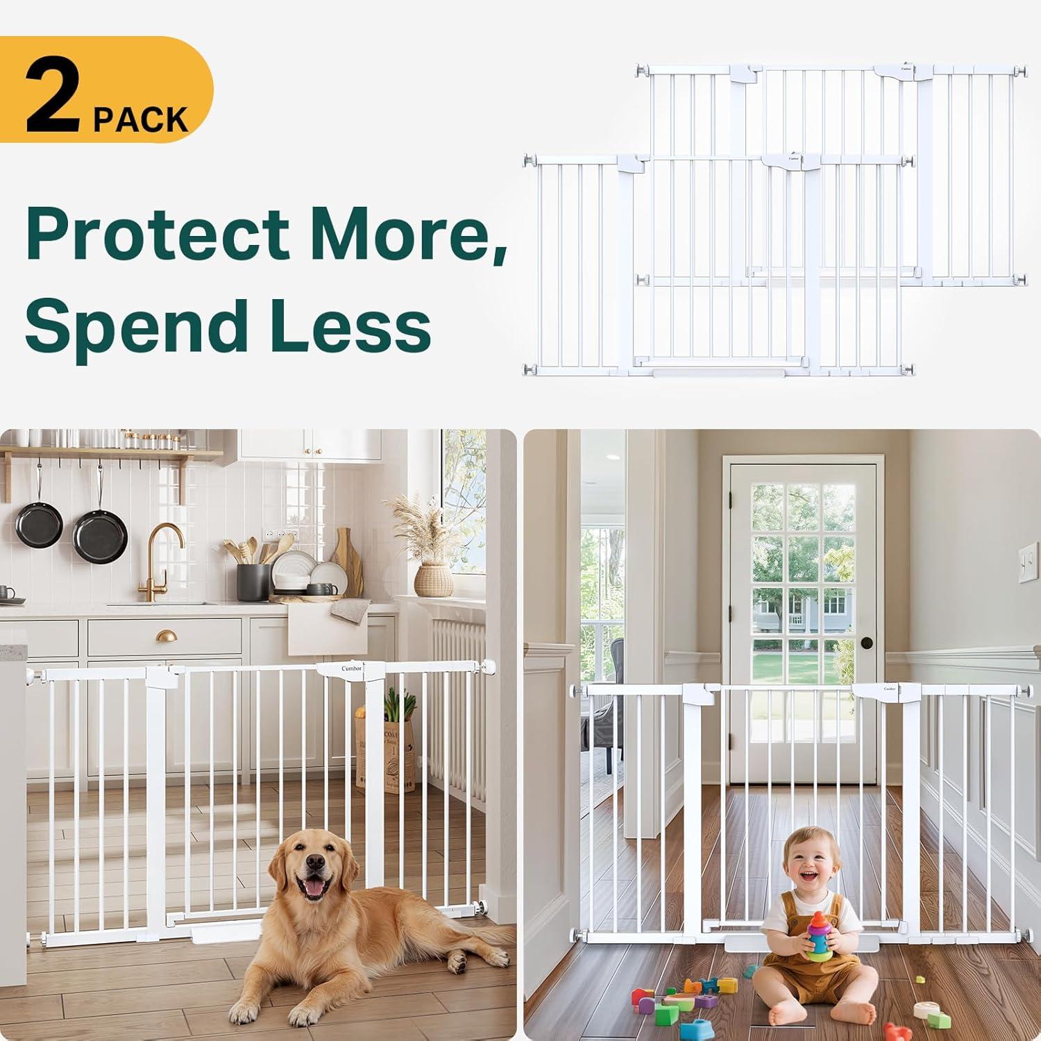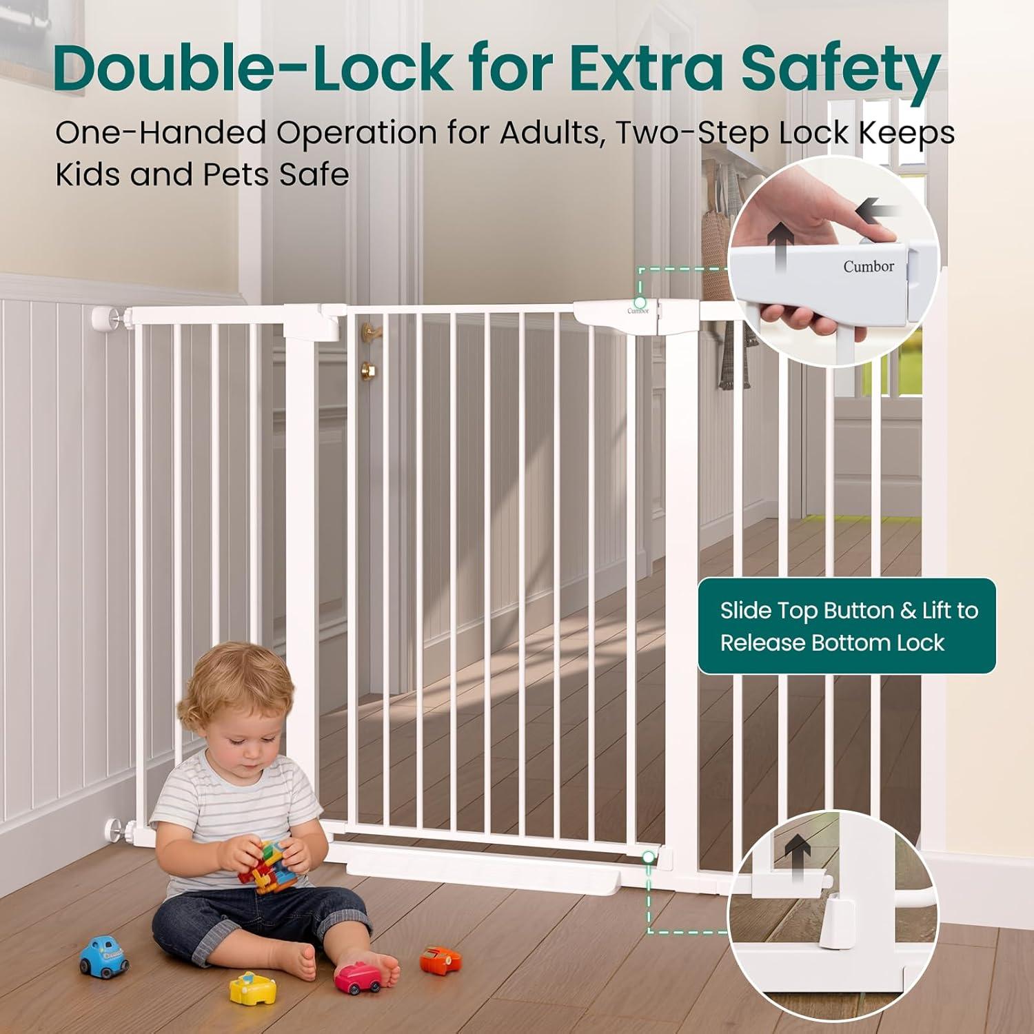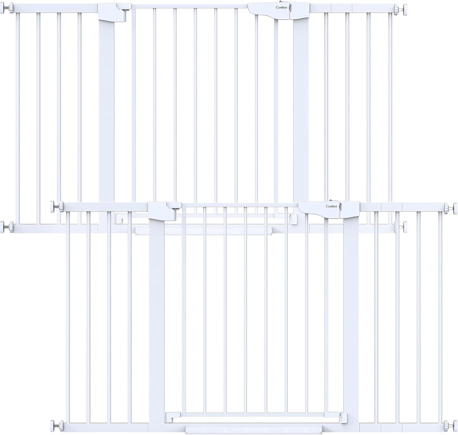 Cumbor 2 Pack 30-54″ Baby Gate for Stairs, Dual Lock & Self-Closing Dog Gate for Doorways, Easy Install Pressure Mounted Pet Gates Indoor, Easy Walk Thru Wide Safety Proofing for Babies & Pets, Black(White)