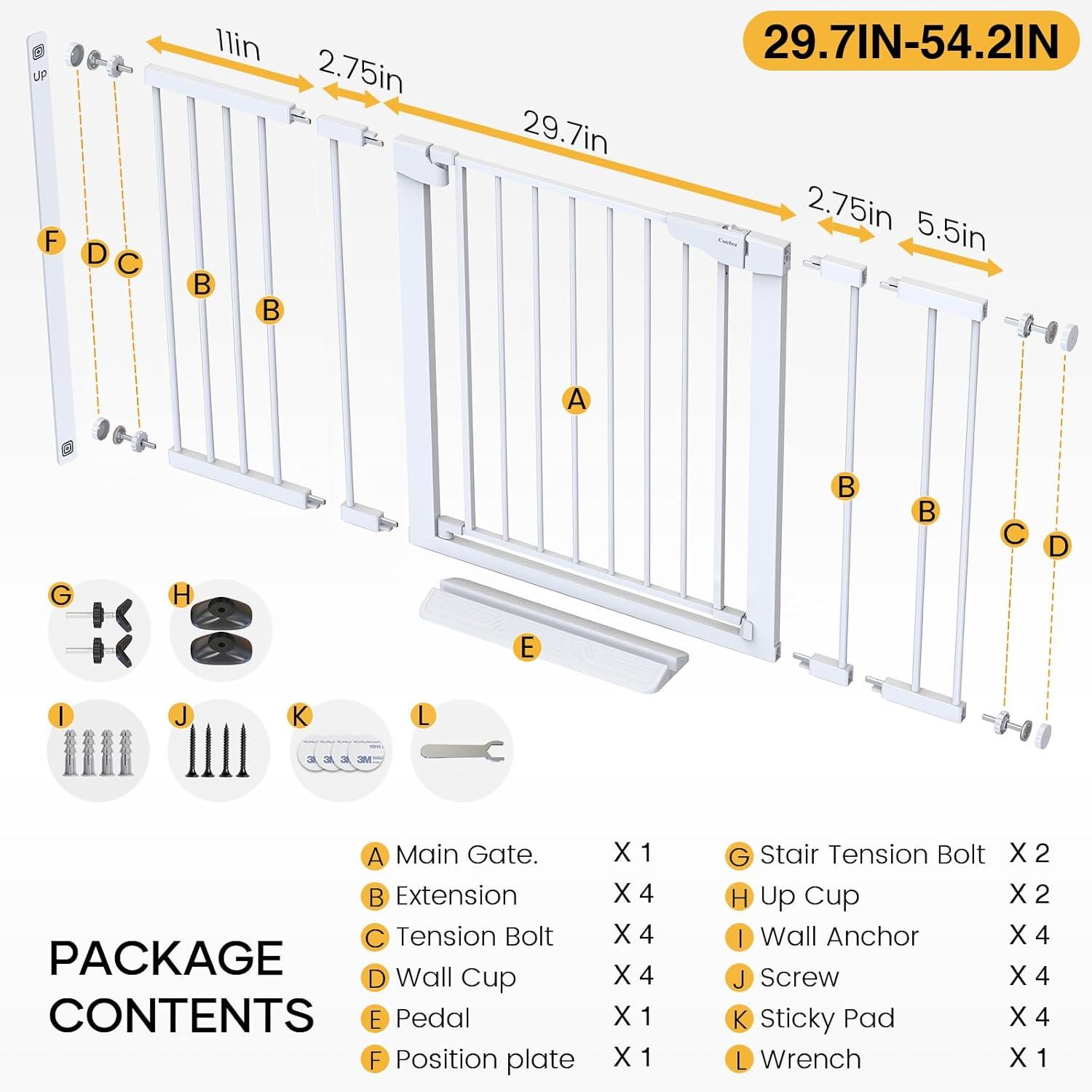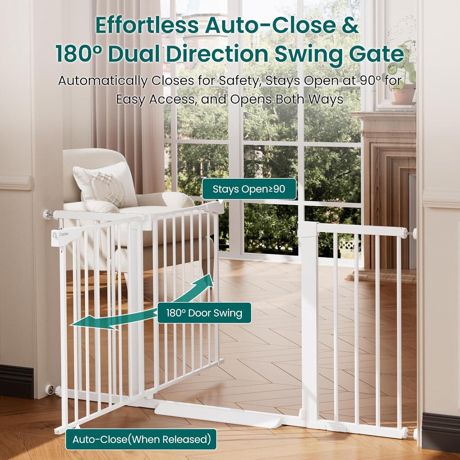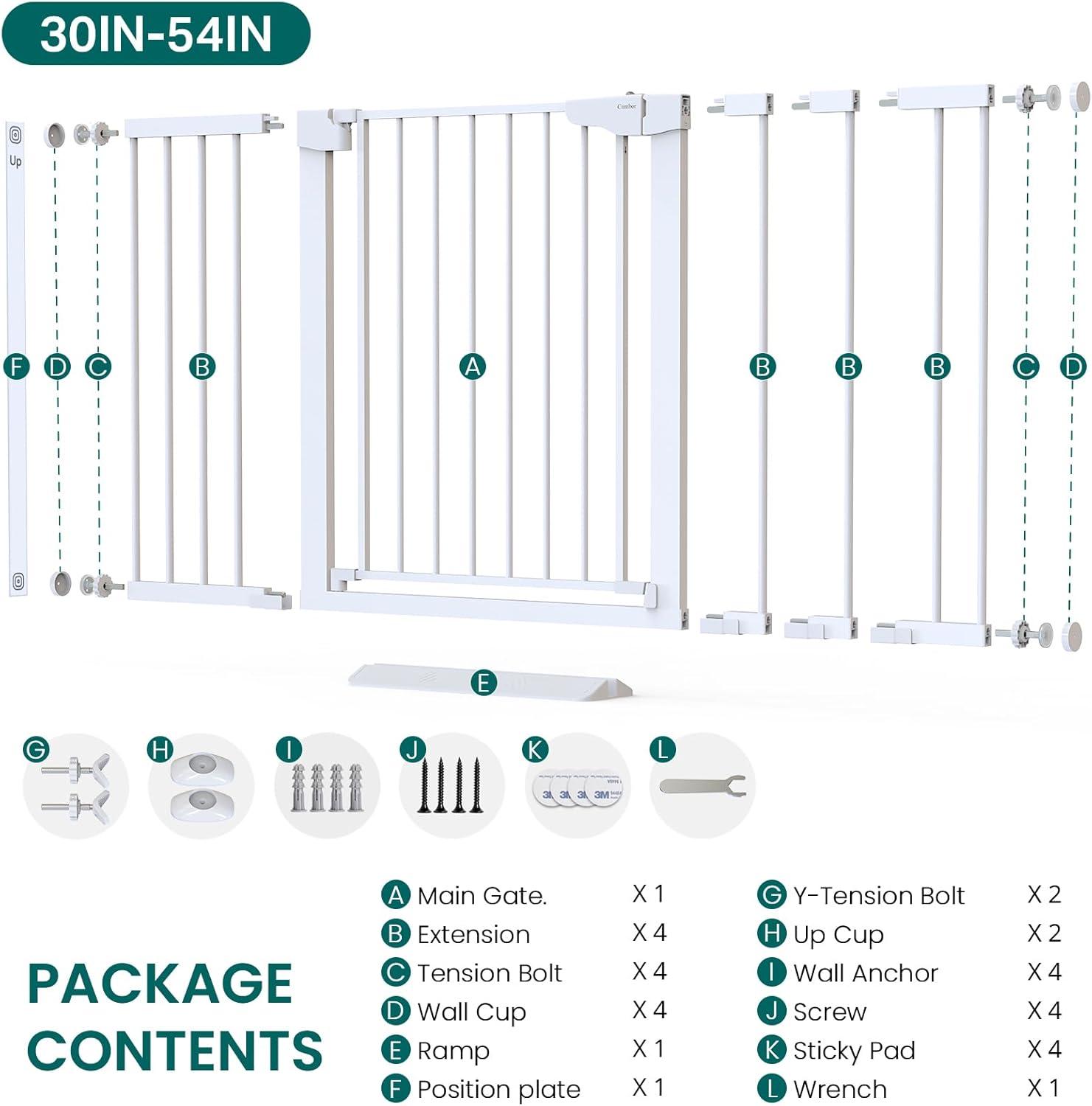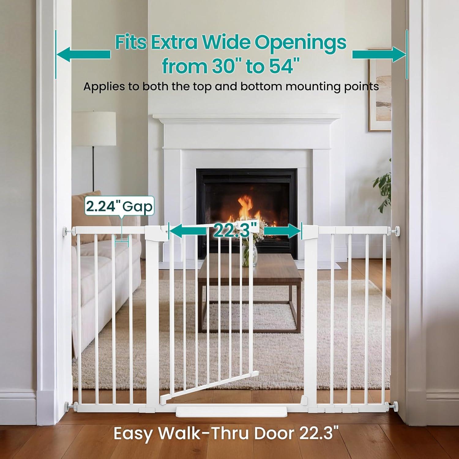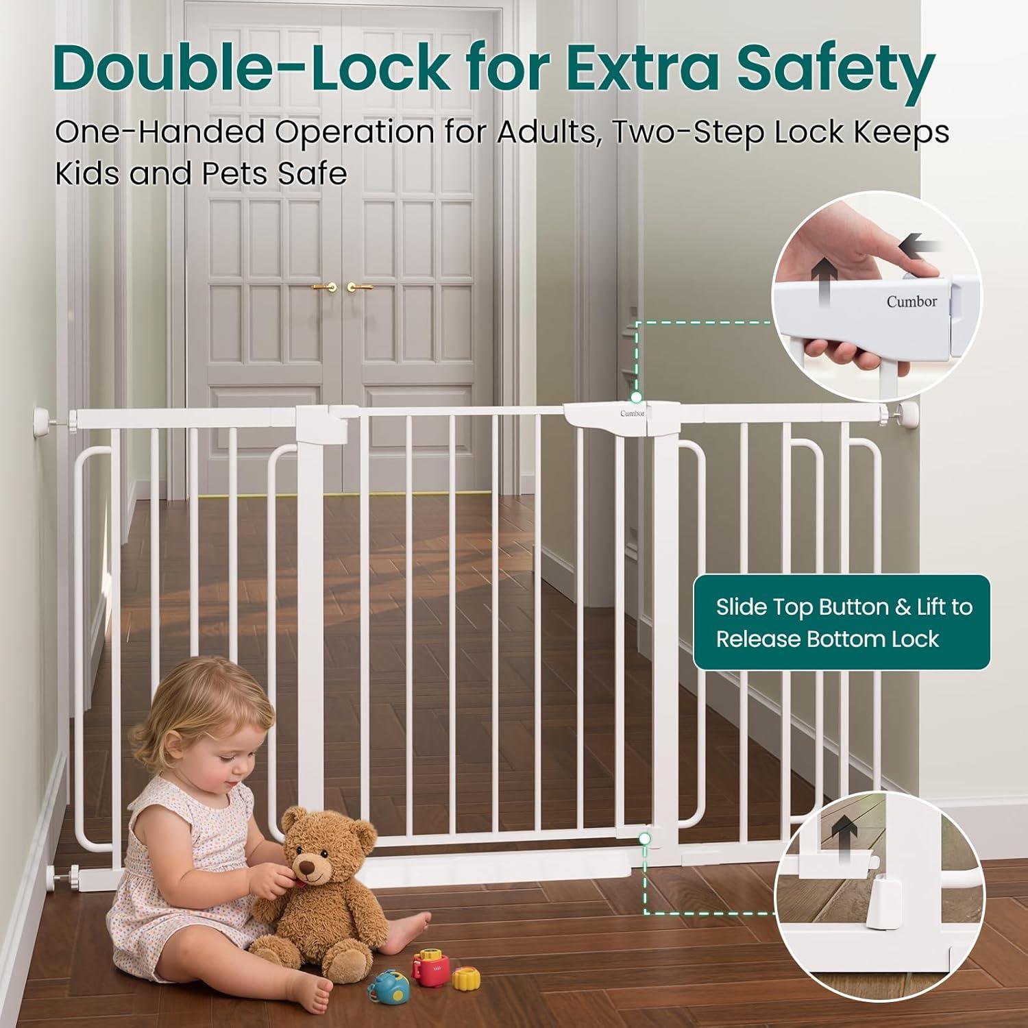 Cumbor 2 Pack 30-54″ Baby Gate for Stairs, Dual Lock & Self-Closing Dog Gate for Doorways, Easy Install Pressure Mounted Pet Gates Indoor, Easy Walk Thru Wide Safety Proofing for Babies & Pets, Black(White)