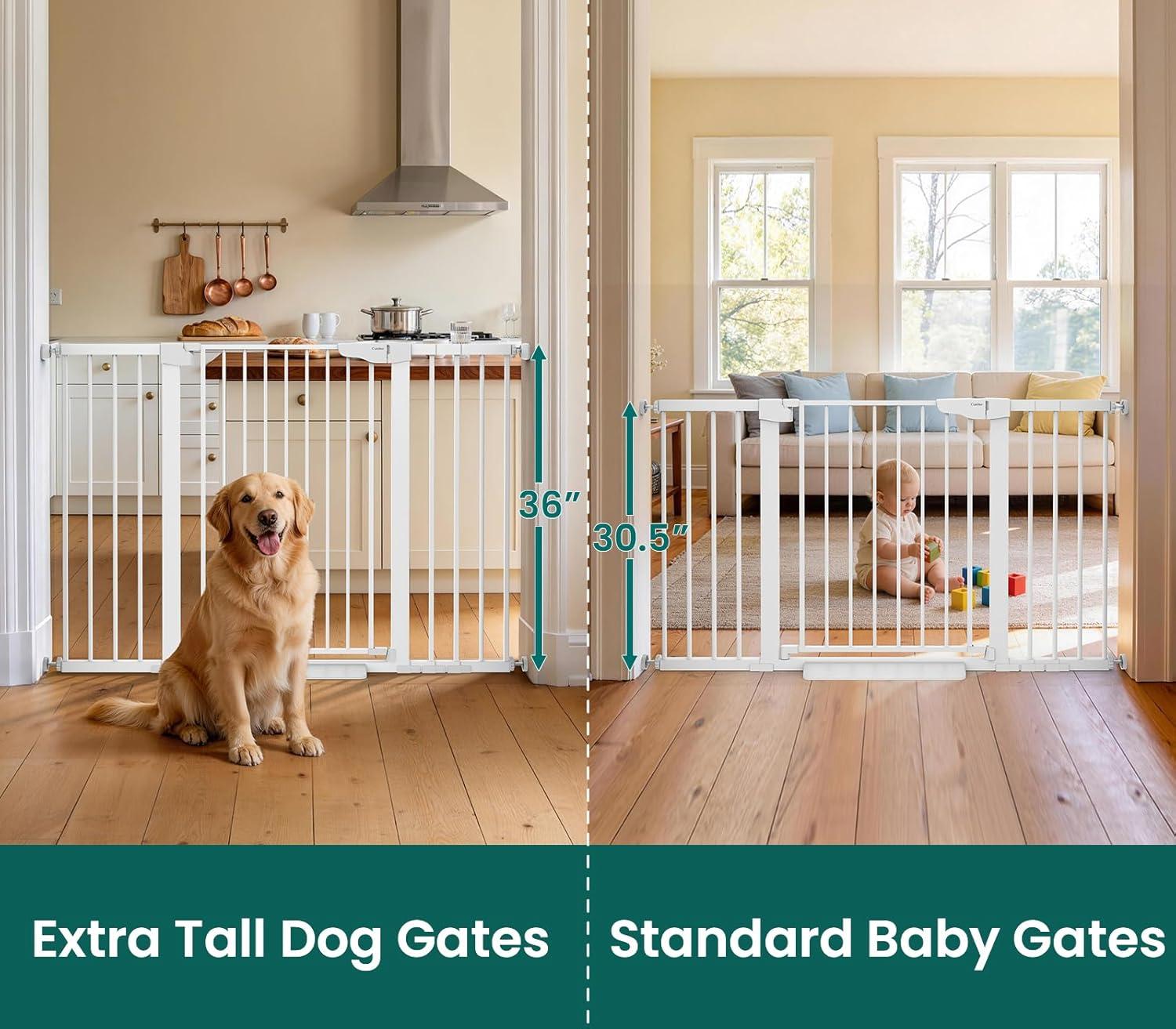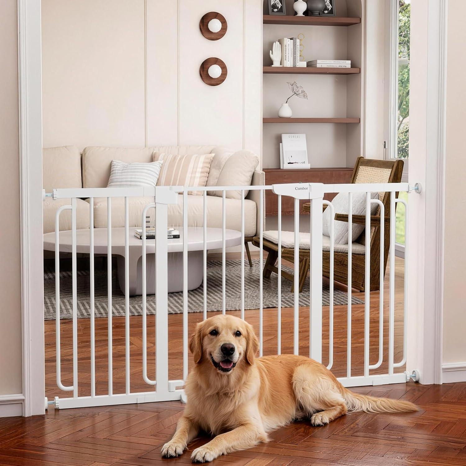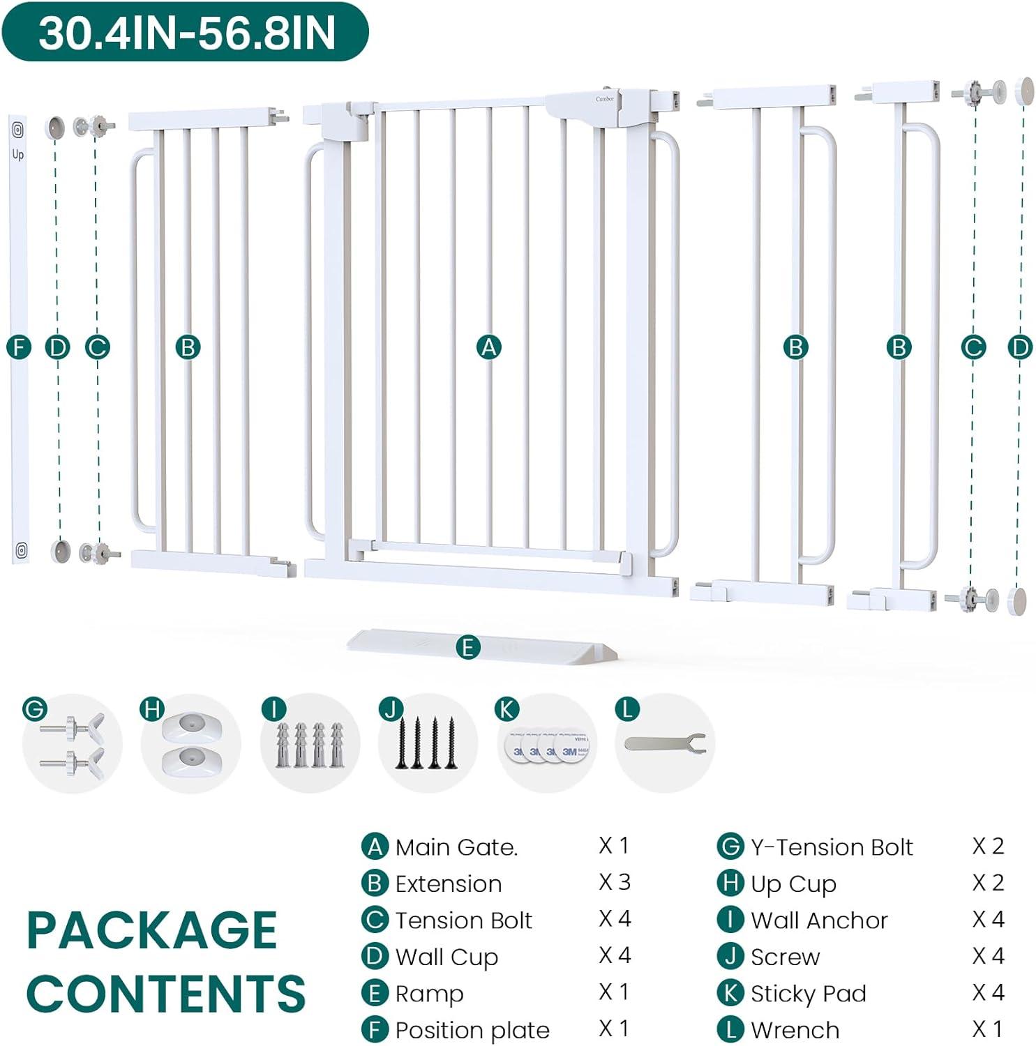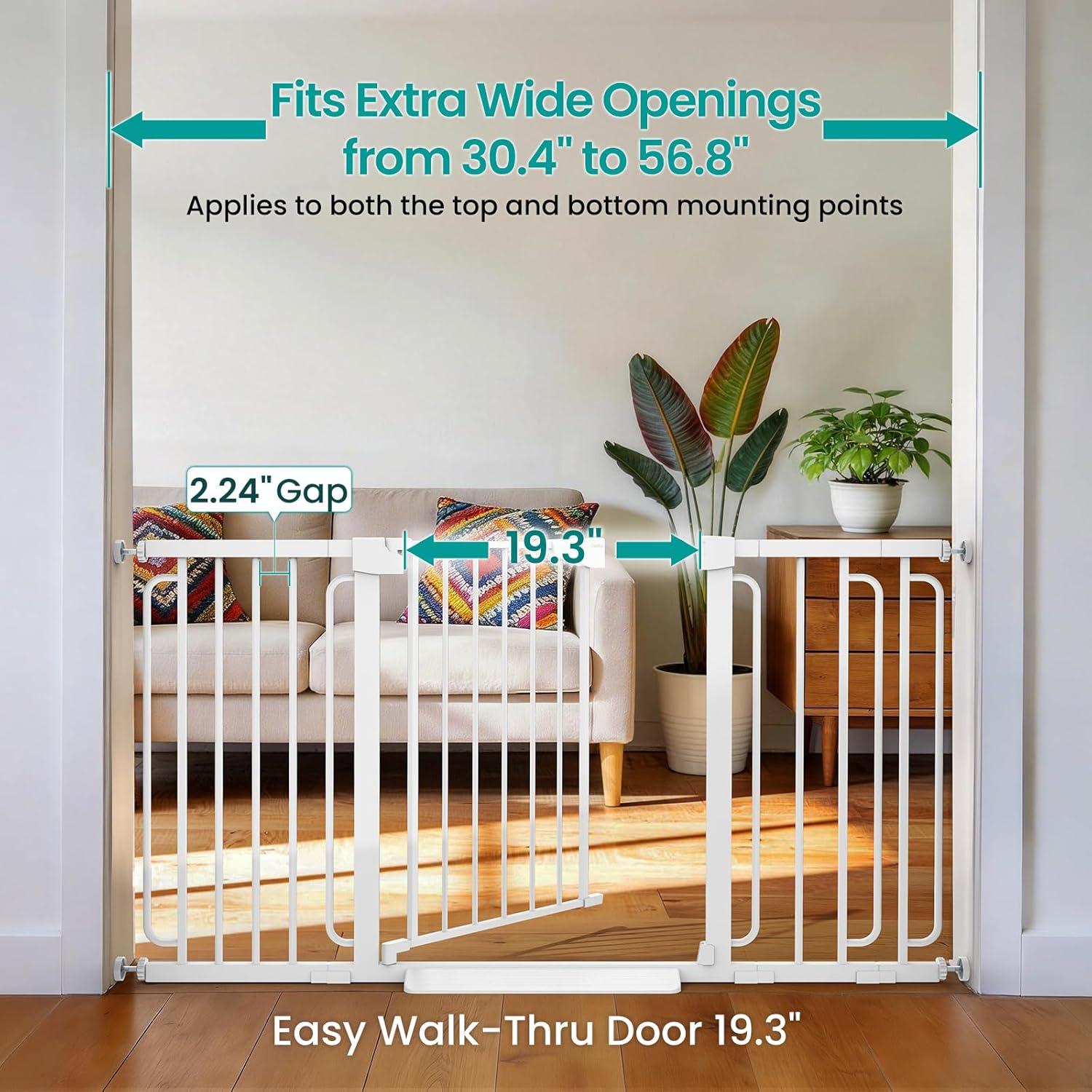 Cumbor 2 Pack 30-54″ Baby Gate for Stairs, Dual Lock & Self-Closing Dog Gate for Doorways, Easy Install Pressure Mounted Pet Gates Indoor, Easy Walk Thru Wide Safety Proofing for Babies & Pets, Black(White)