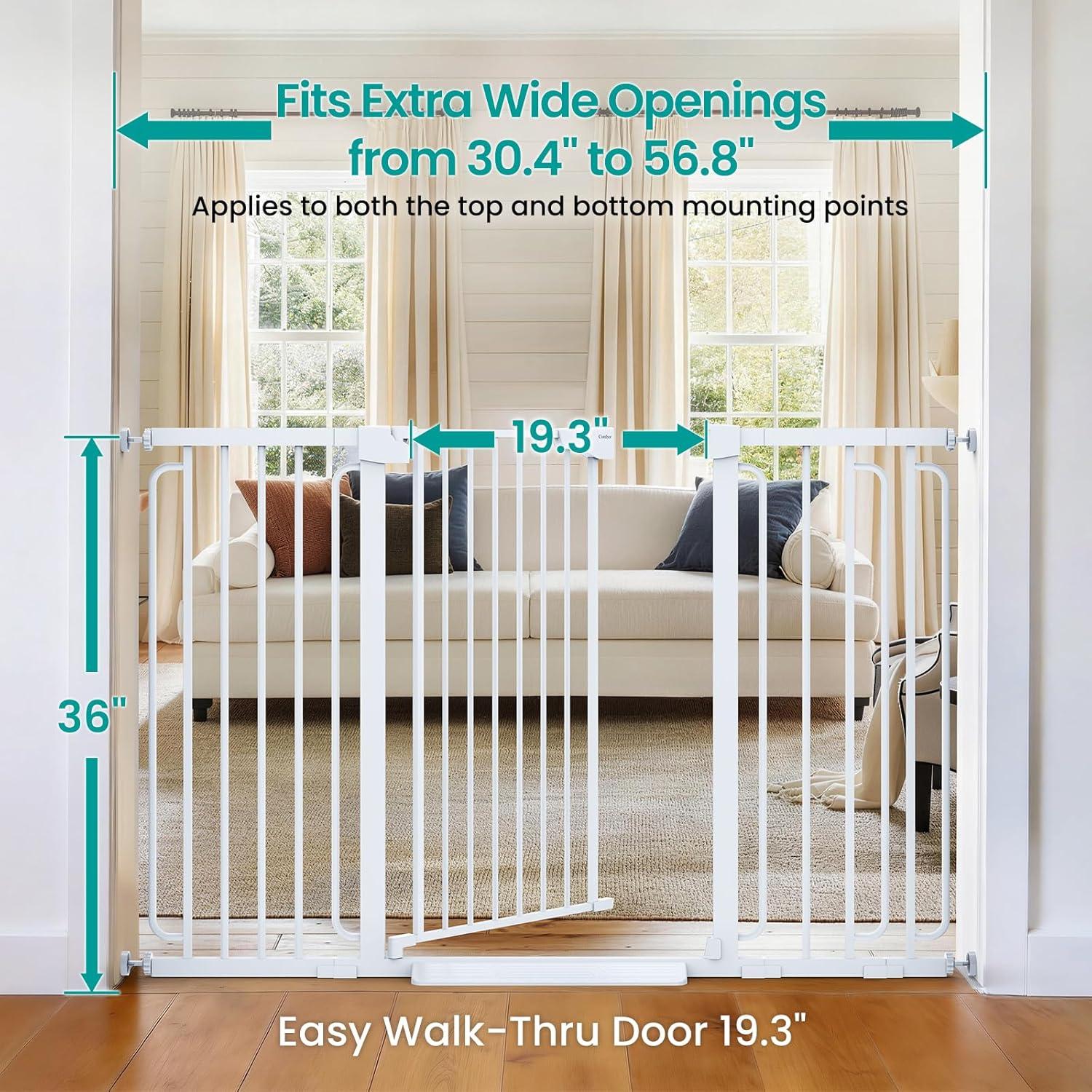 imageCumbor 297515 Extra Wide Baby Gate for Stairs PressureMounted Dog Gates for Doorways amp Hallways AutoClose WalkThrough NoTrip Design Child Proof Safety DogPet Gate for Indoor Use SilverBlack