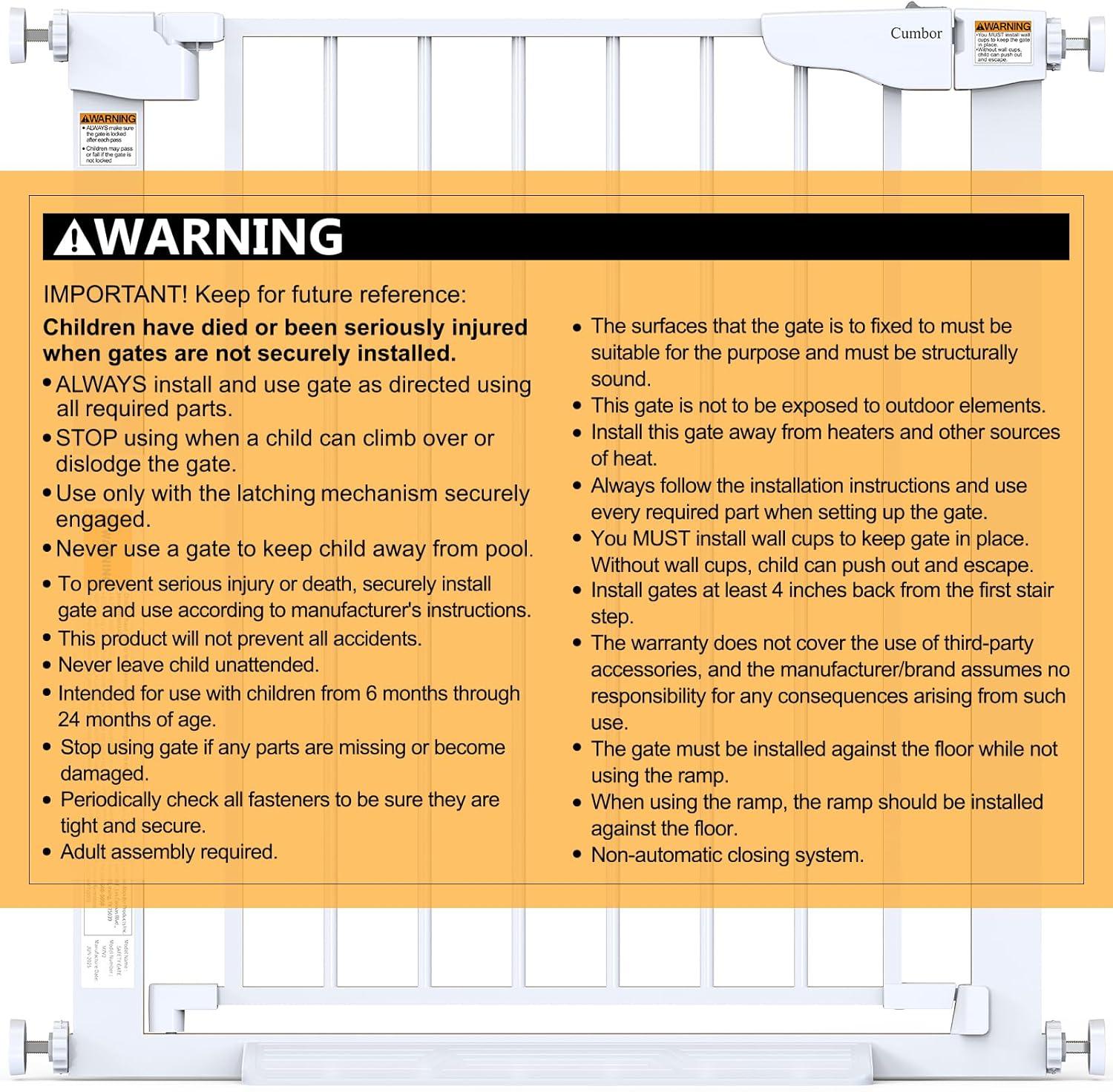 Be the first to review “Cumbor 2 Pack 30-54″ Baby Gate for Stairs, Dual Lock & Self-Closing Dog Gate for Doorways, Easy Install Pressure Mounted Pet Gates Indoor, Easy Walk Thru Wide Safety Proofing for Babies & Pets, Black(White)”