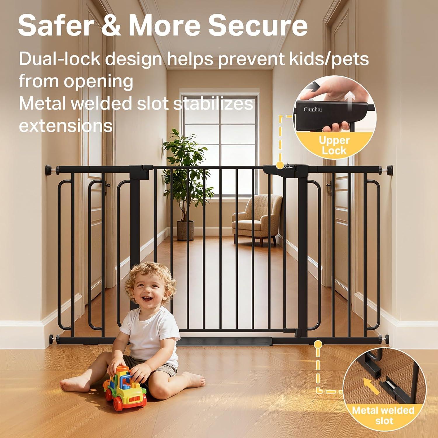 Safer Baby Gate, Peace of Mind – Cumbor steel safety gate with dual-lock handle and sturdy frame helps block curious toddlers and medium dogs, giving your family a reliable child and pet barrier for hallways, doorways and stairs.