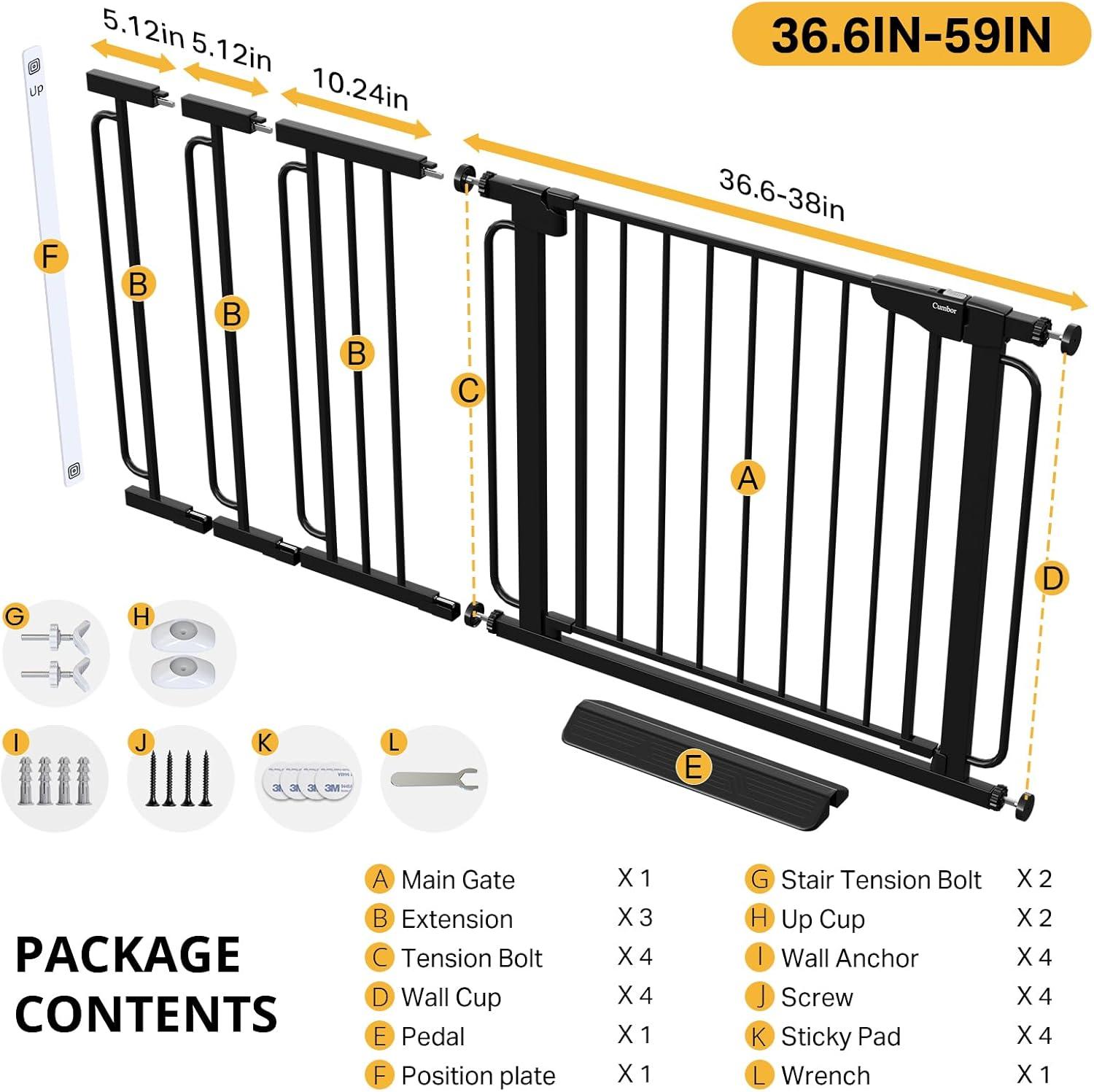 Adjustable Width, One Gate Fits – Cumbor extra wide baby gate includes removable extensions to span from 36.6 to 59 inches, so one gate fits standard doorways, wide openings and stair landings without buying multiple sizes.
