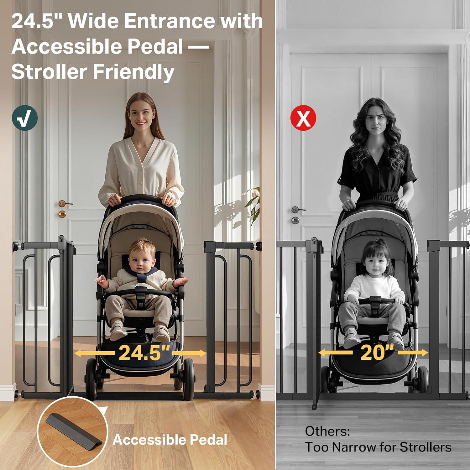 Wide Walk-Through, Easier Every Step – A generous walk-through opening and low-profile pedal make the extra wide baby gate easier to pass with strollers, laundry baskets and pet beds, reducing tripping risk while keeping little ones contained.