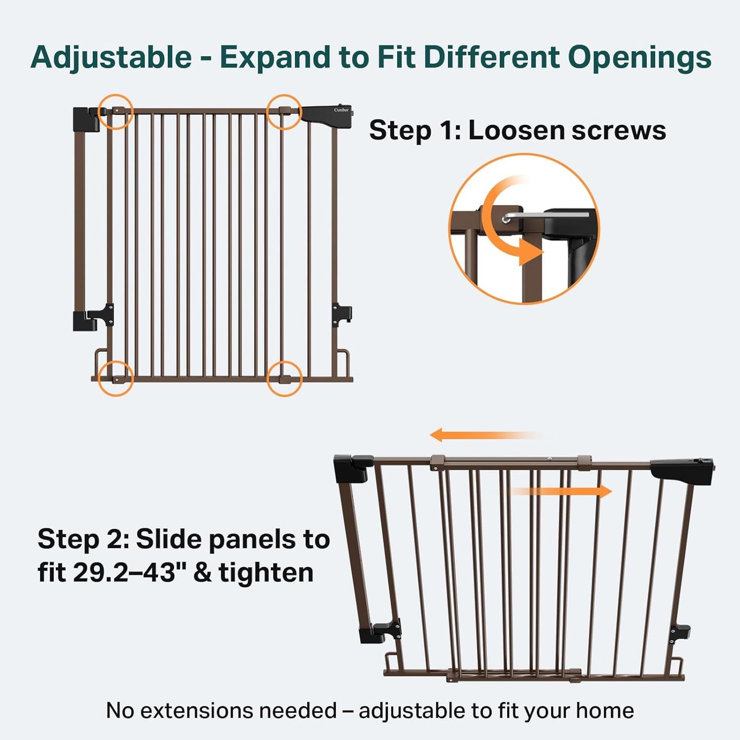 【Extra-Wide Adjustable Fit: 35.1–55 in】Fits openings from 35.1 to 55 inches wide when measured at both the top and bottom mounting points. Ideal for extra-wide doorways, large hallways, open layouts, or wide stair landings where many standard gates may not fit. Measure before purchasing, especially if you have baseboards or angled/irregular banisters.