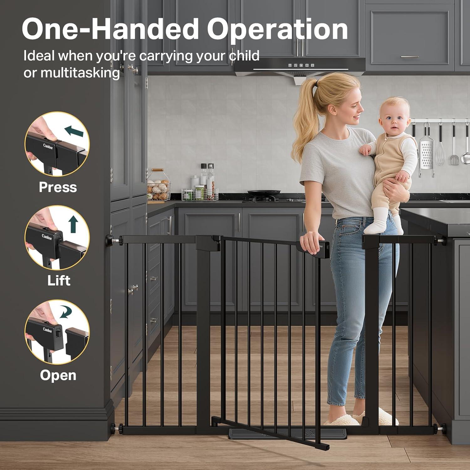 【Maintain a Safer Home Space】The most important reason to install a Cumbor baby gate in your house is that it can help reduce spills and falls down the stairs, potentially minimize injuries, and keep growing babies out of dangerous spaces.
